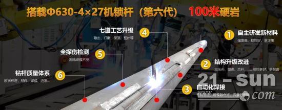 SR580整机高约38米,重达230t,稳如泰山。最大施工钻孔直径可达4m,搭载全新φ630-4×27第六代机锁杆,稳定传输大扭矩、大加压力,使百米入岩成为现实。