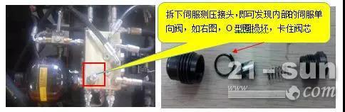 解决方法:更换伺服单向阀损坏的O型圈,设备运行正常,大臂可正常动作。