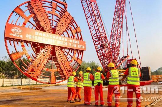 据介绍,项目部前期先后5次召开专家会,对盾构机的选型、改造、刀具、配件吊装组装等进行研讨,针对“富春号”刀盘吊装风险,技术人员与吊装作业队伍反复多次沟通讨论,反复计算履带吊的吊装作业负荷率,通过增加超起配重,提高履带吊最大负载能力满足作业需求。