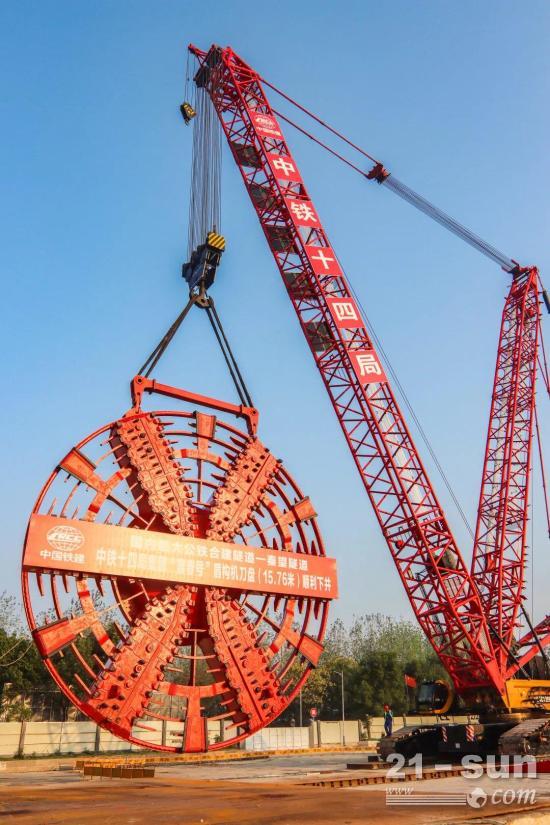 “富春号”盾构机刀盘顺利下井