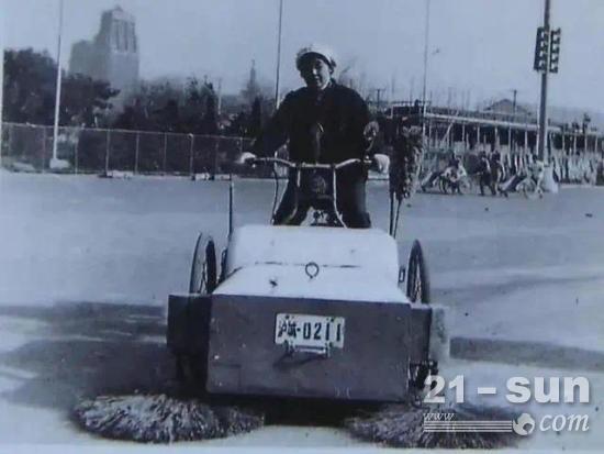 ▲上世纪的人力扫路车