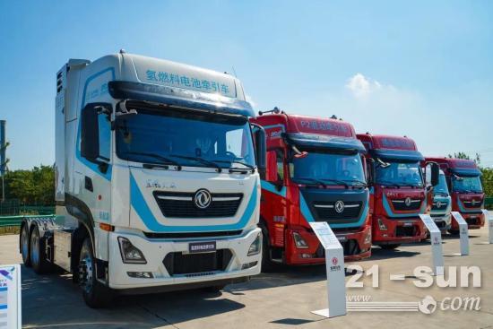 东风天龙氢燃料电池牵引车,匹配100kW燃料电池系统,采用先进的整车能量管理策略及氢安全策略,实际工况下百公里氢耗达8.2kg,续驶里程可超过450km。底盘采用模块化设计,电堆接口标准化,可实现不同燃料电池系统的快速切换。该系列车型目前已在雄安新区批量投入示范运营。
