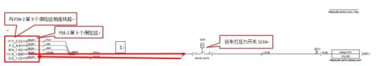 根据电路图(下图3)判断与F58-2第5个保险丝输出相连的门架终点缓冲感应器、空调压缩机压力开关、刹车系统各压力开关线路或部件内部对地短路。