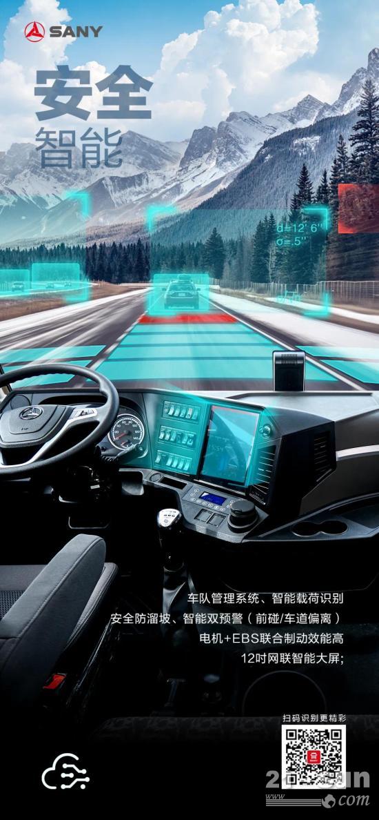 车队管理系统、智能载荷识别,安全防溜坡、智能双预警(前碰/车道偏离)、电机+EBS联合制动效能高、12吋网联智能大屏。