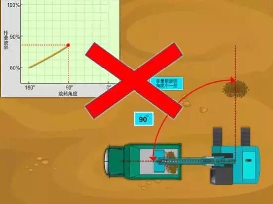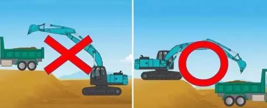 装载卡车尽量停在离挖掘机近的地方,以便挖掘机旋转小的角度就可以挖掘。