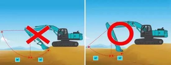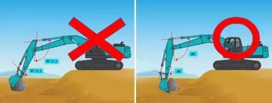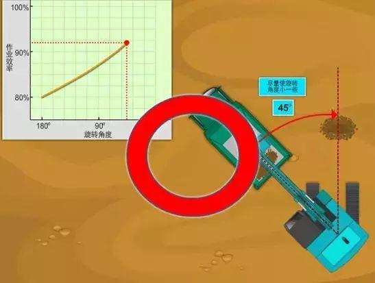 高效率区是指小臂从垂直状态向前面移动45度到向跟前移动30度之间的范围。在该范围内挖掘,以装满挖斗为宜。