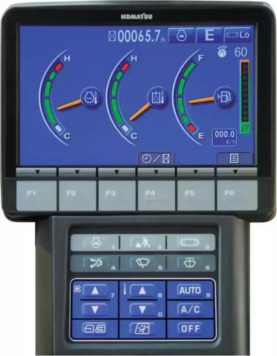 请先进入驾驶室,并把爱机启动起来吧。然后,您将会在小松大型TFT液晶监控器上看到这些。