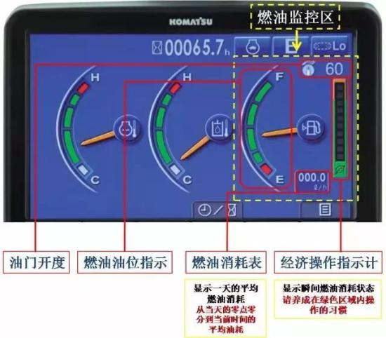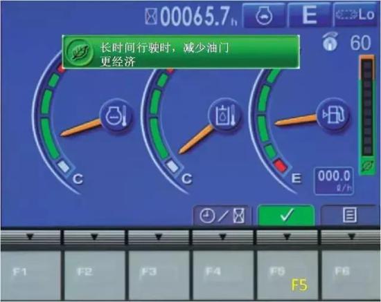 在施工过程中,除了您自己通过按钮来降低油耗,其实,您的爱机也会时常给您提个醒,目的还是帮您省钱呢!要不,咱就试试看吧~
