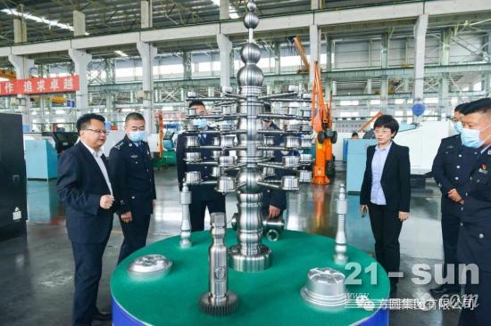 10月18日,海阳出入境边防检查站站长陈刚、政委常景利一行在方圆集团董事薛丽波、国际贸易公司经理赵双元的陪同下参观方圆集团。