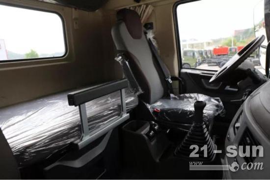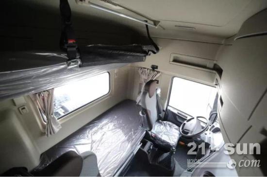 进入驾驶室内部,天龙旗舰520拥有高顶平地板,两米多的内部高度,卡友可在车内行动自如,轻松实现司机换班、等货休闲等场景。它的副驾座椅可以90°旋转,两个人坐一起吃饭时变得“不将就”。