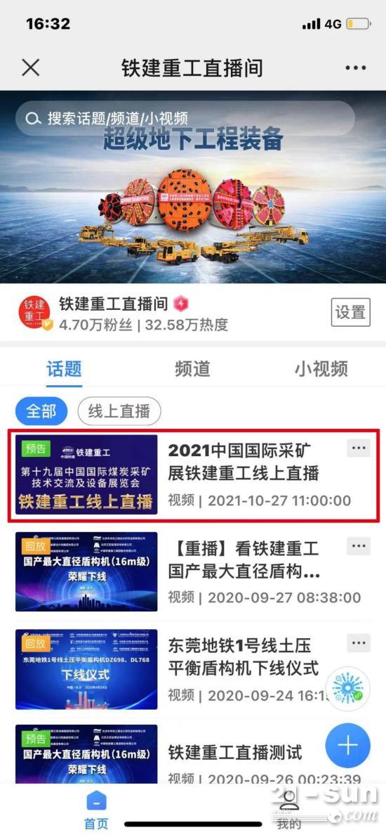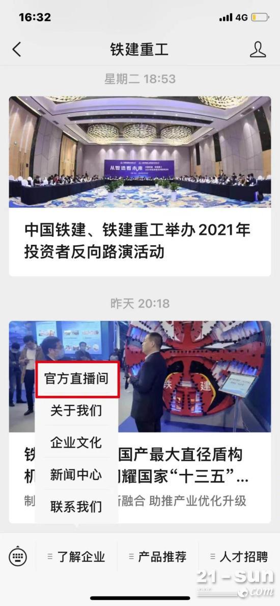 进入铁建重工官方微信号,点击左边菜单栏,进入“官方直播间”,即可观看活动直播。