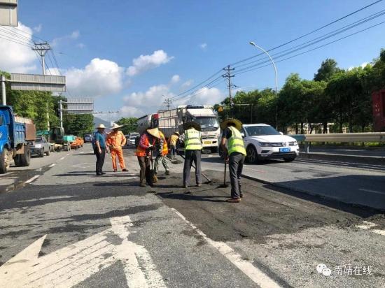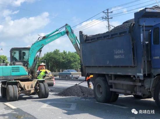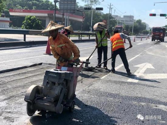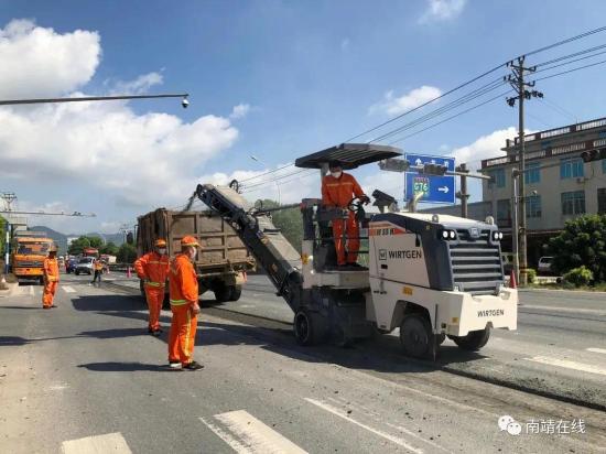 南靖雁塔、龙山红绿灯路口的沥青路面由于长期受重型车辆碾压,出现较多坑槽病害,造成一定的安全隐患。为保障出行安全,及时消除隐患,7月8日起,南靖分中心采用铣刨的方式为公路“焕新颜”。