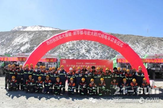 近日,福建宏大时代新能源科技有限公司(以下简称“宏大时代”)与宏大爆破工程集团有限责任公司(以下简称“宏大工程集团”)墨竹工卡县分公司,在5400米的雪域高原举行5台纯电动矿用卡车交接剪彩仪式。参加此次交接仪式的有巨龙铜业采矿厂副厂长何繁、墨竹工卡县分公司经理危剑林、宏大时代售后经理韩夷松等。