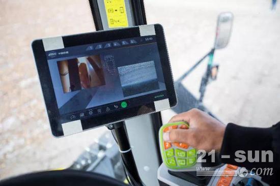 铁建重工系列采棉机配备近电感应系统,增加了设备在采棉过程中的安全保障,当感应到周围有电线时会在显示屏上报警,让驾驶员注意观察周围情况,当报警出现时会停止棉箱倾翻等动作,防止在倾翻过程中接触电线。