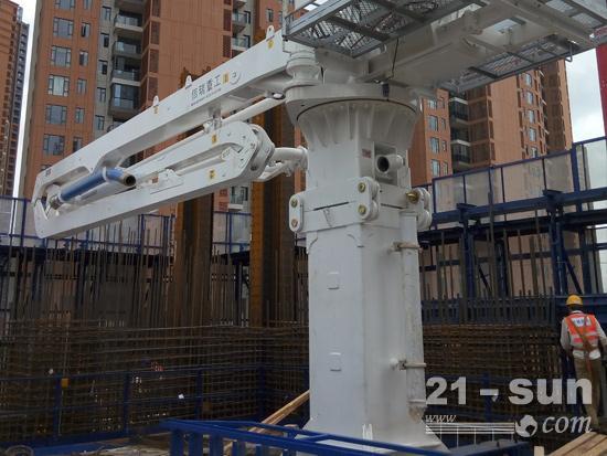 5、安装完成,开始施工,臂架可以手动操作,也可以遥控操作,跟泵车无异。