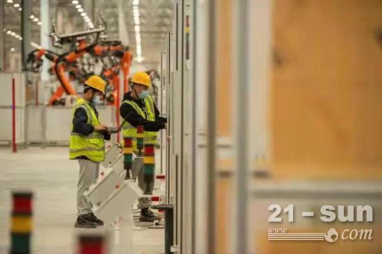 在焊装车间,一条条架在半空中的吊架和人行通道也陆续安装完毕,人和重卡“分道而行”。届时,一块块的钢板将通过吊架实现“空中漫步”,抵达焊装车间,在一个个机器人“焊匠”的巧手下,焊接成重卡驾驶室,最后装配成一个个卡友在公路上“温暖的家”。
