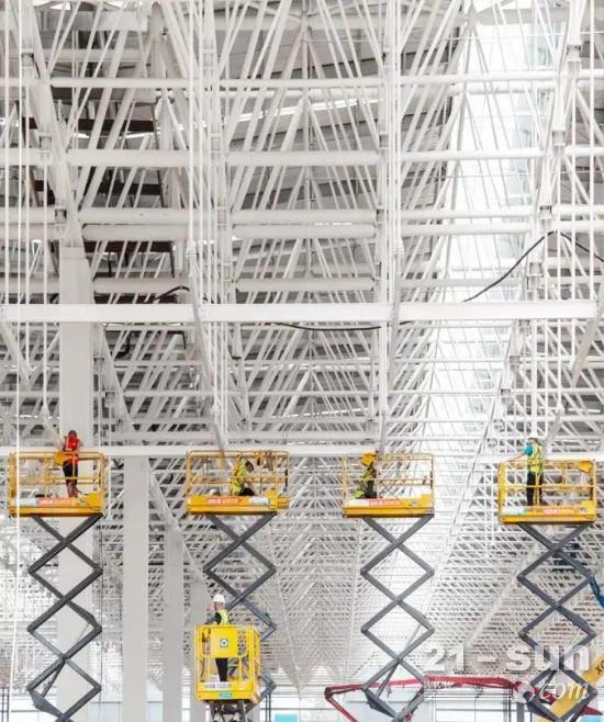 笔者了解到,过去一年中,B地块项目工作量最大的建设任务是钢结构立柱和顶部网架结构的安装,最繁忙时,现场施工人员超过2000人。
