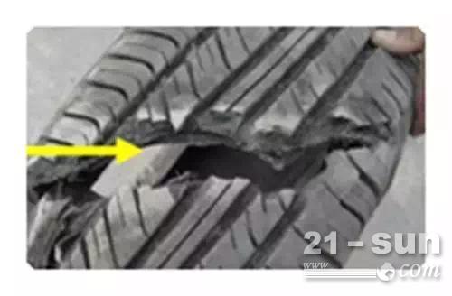 解决方案:建议要经常检查轮胎是否有损伤、轮胎气压是否正确,若发现类似图片问题,请及时去正规修理厂或快修店更换新胎。