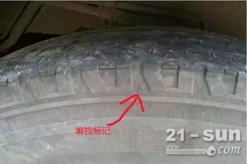 诊断一:轮胎在出厂前都会在两侧胎肩上用印模印出“△”标志(如上图所示),它是用来指引轮胎胎面磨损指示标记的位置。这些稍微突起的胎面磨损指示标记位于胎面花纹沟槽的底部,高度为1.6毫米(法定的最小沟槽深度)。如果胎面橡胶花纹块磨损到与这些突起的标记一样的高度,您应该立即更换轮胎,因为继续驾驶已经不再安全。在湿滑路面上使用磨损的轮胎,将发生“水飘现象”,增加驾驶失控的风险。因为在过度磨损的轮胎上,胎面花纹无法将轮胎下方的积水排出,从而会导致车辆失控。