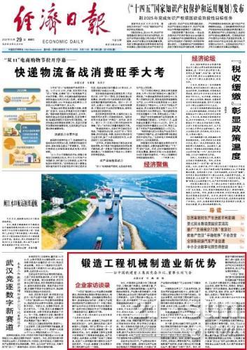 10月29日,《经济日报》头版刊登文章《锻造工程机械制造业新优势》,对铁建重工党委书记、董事长刘飞香进行专访报道,解读工程机械制造业如何在构建新发展格局中完成转型升级,在全球竞争中形成发展新优势。