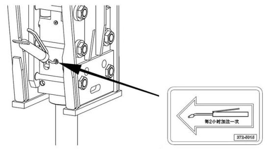 ※ 破碎锤钎杆和衬套中应定期加入耐水润滑脂,以防止经济损失。如果钎杆在工作前未进行润滑脂处理,就会造成钎杆衬套的加速磨损和钎杆的损坏或断裂。