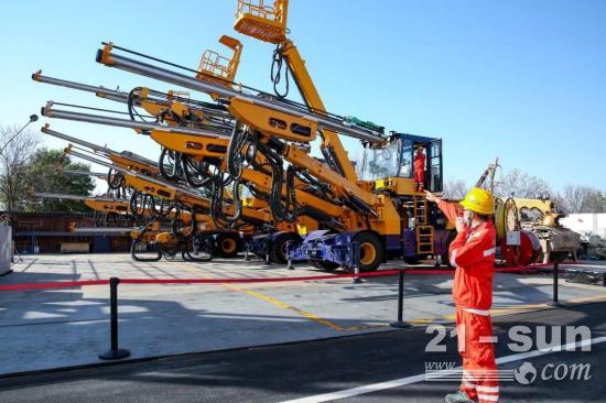 在河南新乡的专用设备园区,刚刚下线的多台智能型三臂凿岩台车正在进行交付前的最后准备,即将与高原型湿喷台车一起发运至高原铁路隧道建设现场。这是中铁装备在高原铁路应用的又一批隧道机械化专用设备,为世纪工程贡献中铁装备力量。