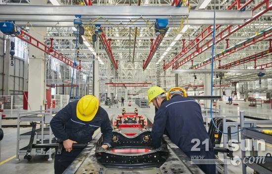 总投资220亿元,占地6000亩,三一智联重卡厂房主体建设已完成。2021年11月12日,智联重卡产业园首台重卡隆重上线,厂房1号工位产线正式启用!