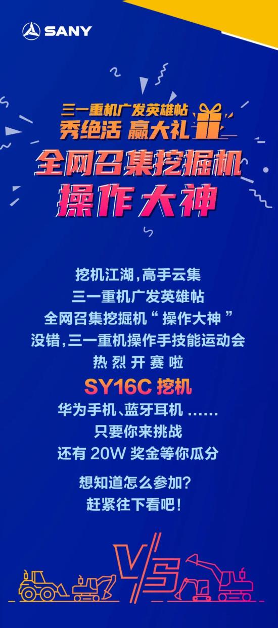 秀绝活,赢大礼!三一重机全网召集挖掘机“操作大神”!