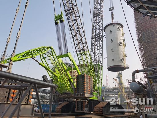 “嚁~”近日,随着一声清脆的哨声,在山东省滨州市北海新区碳三碳四综合利用项目现场,60万吨/年PDH装置PP塔设备改造开始吊装作业。来自中联重科的ZCC32000超大吨位履带起重机采用78米主臂+42米超起塔式副臂工况,经过两个半小时的施工,以超强起重能力、超高稳定性完美完成了吊装任务,展现出中联重科产品有口皆碑的强大性能和超高品质,也获得了施工方的高度肯定。
