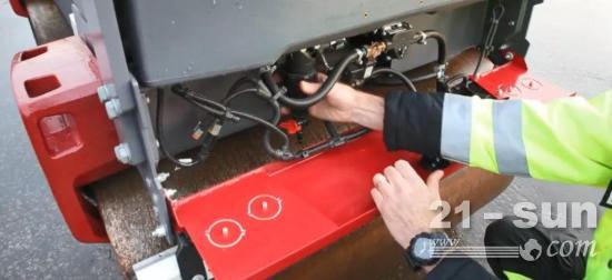 洒水系统的喷嘴触手可及,水泵、过滤器位于后钢轮上方,这些都使维保工作可更易完成。