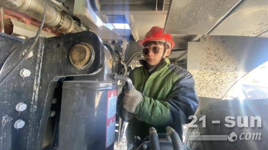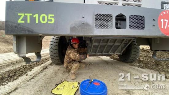 他们时刻秉持着以客户为中心的原则,急客户所急,想客户所想。矿山开采,最重要的就是效率。为了不耽误矿卡的出勤率,他们只能在每天中午或晚上矿卡司机用餐的时间对设备进行点检。短短半小时,他们必须以专业的态度、最高的效率完成点检工作。