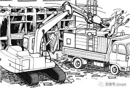 11、使用挖掘机拆除构筑物时,操作人员应分析构筑物倒塌方向,在挖掘机驾驶室与被拆除构筑物之间留有构筑物倒塌的空间。
