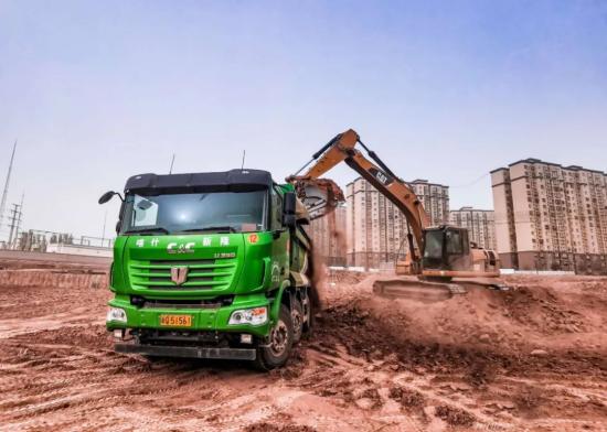 不远处,联合卡车依旧忙碌的穿梭在喀什的建设工地上,相信联合卡车这群高效的搬运工,会助力喀什经济特区建设的更快、更美丽。