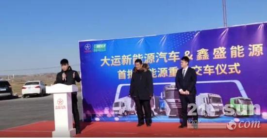 山西大运汽车河北营销中心总经理夏阳、邯郸重沃潍柴商贸有限公司总经理王勇、鑫盛能源公司余云超先生等嘉宾参加此次交车仪式。交车仪式上夏总首先感谢客户对大运的信任,并表示新能源汽车是国家能源转型重要实施环节,能源转型、绿色低碳发展已经成为不可阻挡的全球趋势,鑫盛化工作为邯郸市磁县节能减排示范企业,率先采购大运新能源重卡在当地起到了一定的影响力及示范带头作用。