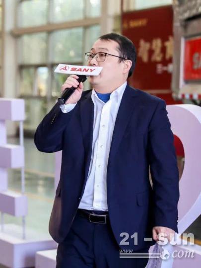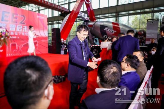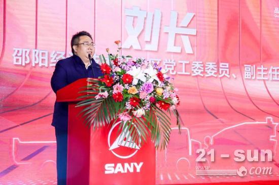 湖南省邵阳经济开发区党工委委员、管委会副主任刘长发表开幕致辞,表示三一iSEE2下线是三一集团绿色新能源车发展快车道的重要里程碑。