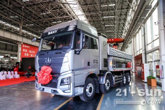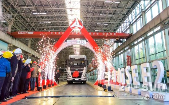 2款产品由生产线缓缓驶入舞台,这是三一电动具有里程碑性质的全新产品,电动化战略再向前一步。