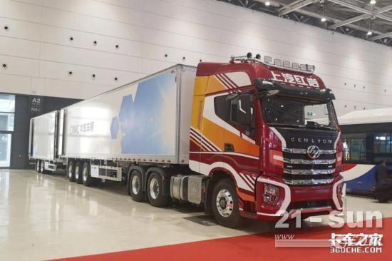 除了杰狮H6的高端牵引车头,双挂列货车后面的两节货厢也非常吸引眼球,这两节通华先锋的货厢就像火车车厢一样挂在牵引头的后面,一个车头拉两个货厢,想想就很刺激。