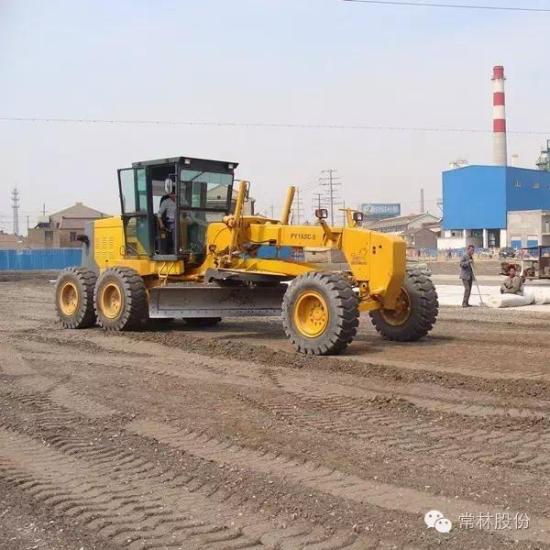 10使用平地机清除积雪时,应在轮胎上安装防滑链,并应探明工作面的深坑、沟槽 位置。