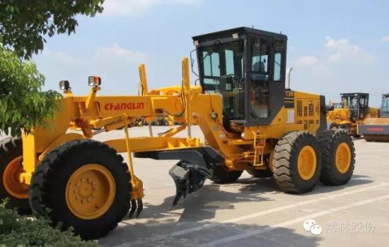 平地机在作业时,由于刮刀有一定回转角,或由于刮刀在机体外刮侧坡,使机器受到一个侧向力的作用,常会迫使机器前轮发生侧移以致偏离行驶方向,加剧轮胎的磨损,并对前轮的转向销轴产生根大的力矩,使前轮转向(偏摆)的阻力增大,这时,可以采用倾斜前轮的方法来避免。