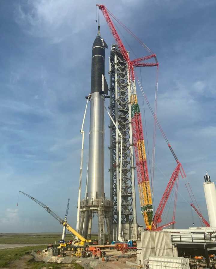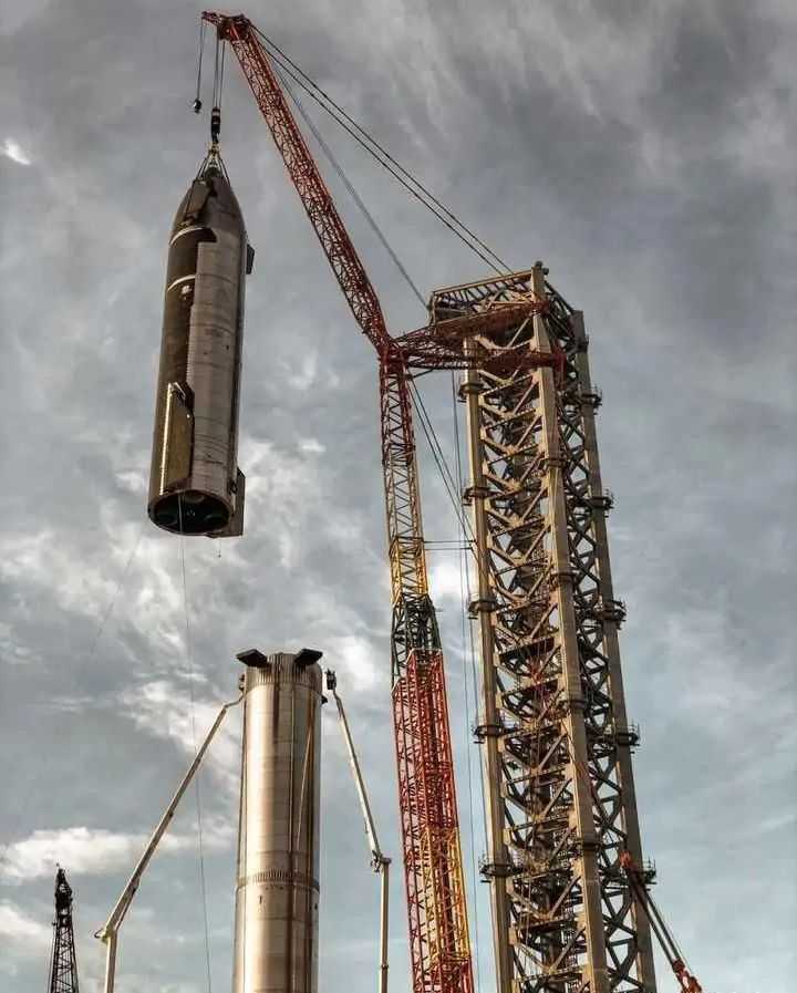 我们在看马斯克SpaceX公司吊装星舰的时候常用到一台十分巨大的起重机把星舰的上面部分给吊上去,要知道星舰就已经十分巨大了,它的直径粗达9米,高度更达118米,相当于40层楼的高度了,而它又是坐落在一个高达20米的支架上,所以顶端的高度已接近140米,相当于47层楼的高度,然而把它吊装上去的吊车又比它高出很多,长长的架臂顶天立地一般,吊钩很轻松地就把星舰上面级给提上去安装了,这台起重机无疑又给人以更加震撼的感觉。