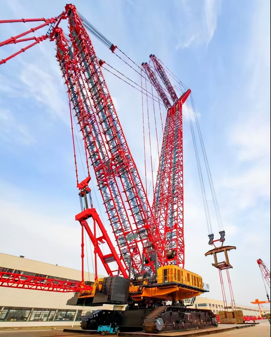 徐州重工的XGC88000型履带式起重机在2013年就生产出来了,其起重能力可一次性吊起2000辆汽车或90辆中型坦克,而三一重工的SCC40000A于2020年下线投用,人字型双臂架长120米,主臂+固定副臂高度可达150米(108+42米),主臂+变幅副臂长度则可达108+108米,最大起重力矩90000吨米,两者都是4000吨级的超级履带起重机。