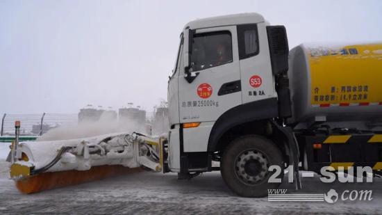 在新产品技术升级方面,徐工新一代抛雪机具可以将堆积成半米高的积雪瞬间抛出30米开外,打碎成细小的冰渣洒落在地上,每小时抛雪2500吨,目前抛雪能力可达4000吨的产品正在紧锣密鼓地研发中。