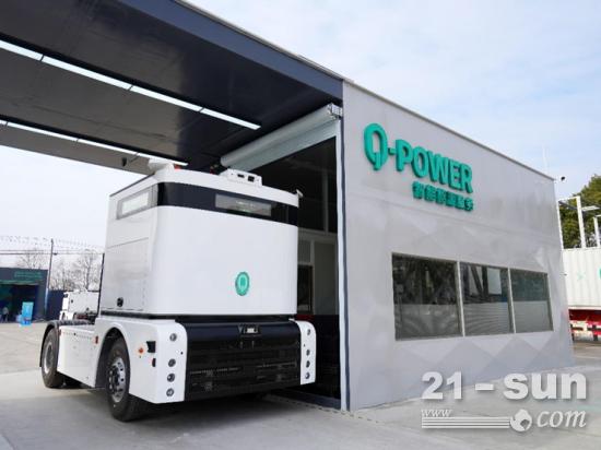 智能换电无人驾驶商用车Q-Truck正在Q-Power智能能源服务(换电站)进行换电