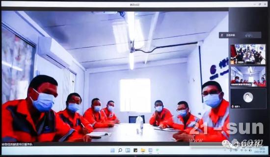 连线中,服务团队负责人黄俊林详细介绍了项目建设、成套装备维保和现场疫情防护等工作情况。7名团队成员依次进行了自我介绍,公司领导赵华和王俊龙一一问候,了解他们的家庭、工作和生活情况。