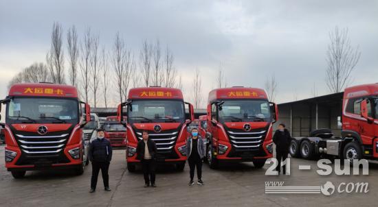 近日,临汾市曲沃县王老板喜提7台大运V7 460燃油车。曲沃区域客户主要从事钢材运输,王老板也不例外。钢材运输行业,客户在选择车辆可靠、安全、经济的前提下,都会特别注重车身自重。大运V7系列牵引车,最轻可至7.26T,就是这样一款可以满足客户需求的产品。