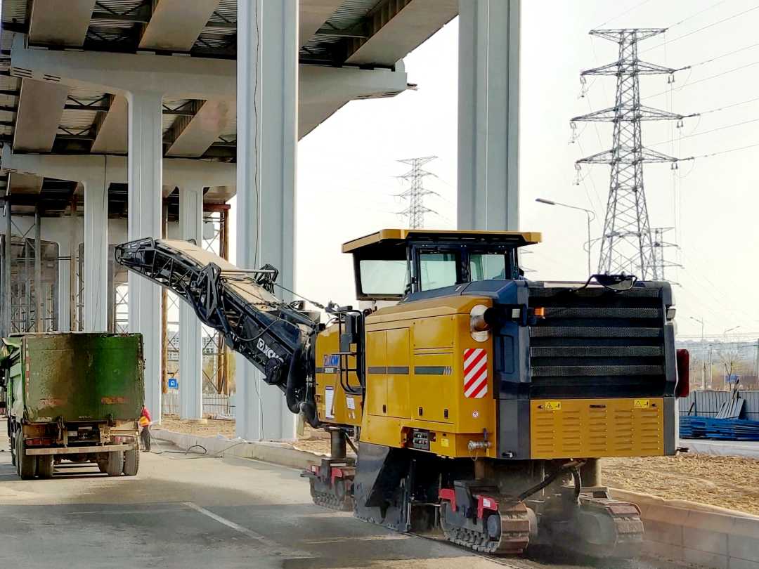 该沥青铣刨项目,铣刨深度4cm,应施工方要求,铣刨速度保持20m/min以内,确保优质的铣刨效果,为后续8cm的沥青摊铺打好基础。在施工路段上,每根桥柱下均有建桥时留下的15cm左右的坑槽,这给施工带来了一定的困难。徐工铣刨机XM2005K凭借强大的动力系统、强劲的铣刨能力、可靠的作业表现,最大限度地缩短作业时间,获得施工方的高度好评。