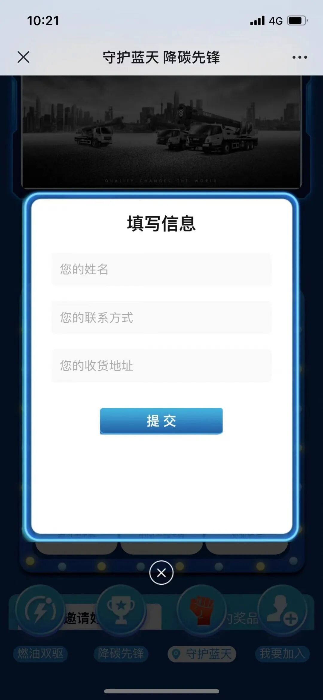 使用三一混动起重机的用户,注册并授权个人信息,即可了解设备的节油量和减排数,参与降碳排行。