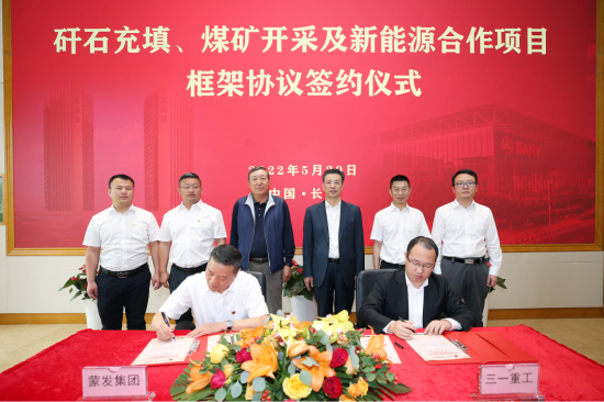 5月20日,蒙发能源集团与三一重工在长沙签署战略合作协议,双方将在矸石充填、煤矿开采和新能源领域展开深度合作。