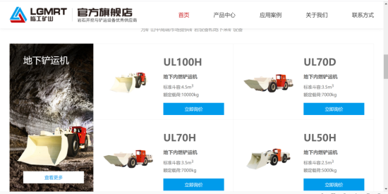 在首页通过导航栏,用户可以通过产品中心、应用案例、关于我们更多地了解临工矿山及产品。