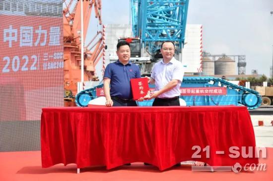 8月29日,广东省阳江市保丰港作业区内,三一1600吨履带起重机SCC19800TM成功交付,同时,SAC24000T全路面、SCL10000桁架臂全路面产品完成签约。三款千吨级“风电利器”即将落户泽友科工集团有限公司。
